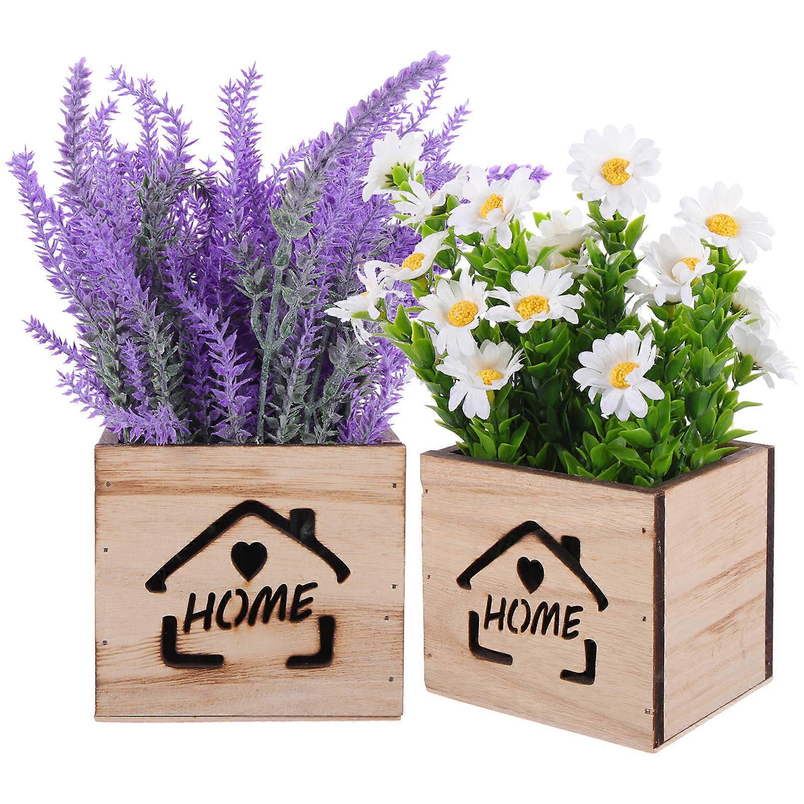 Home Bonsai Decor Faux Plants Indoor Fake Flower Ornament Wooden Box Hollow-out Design Friends Family Co-workers 2Pcs
