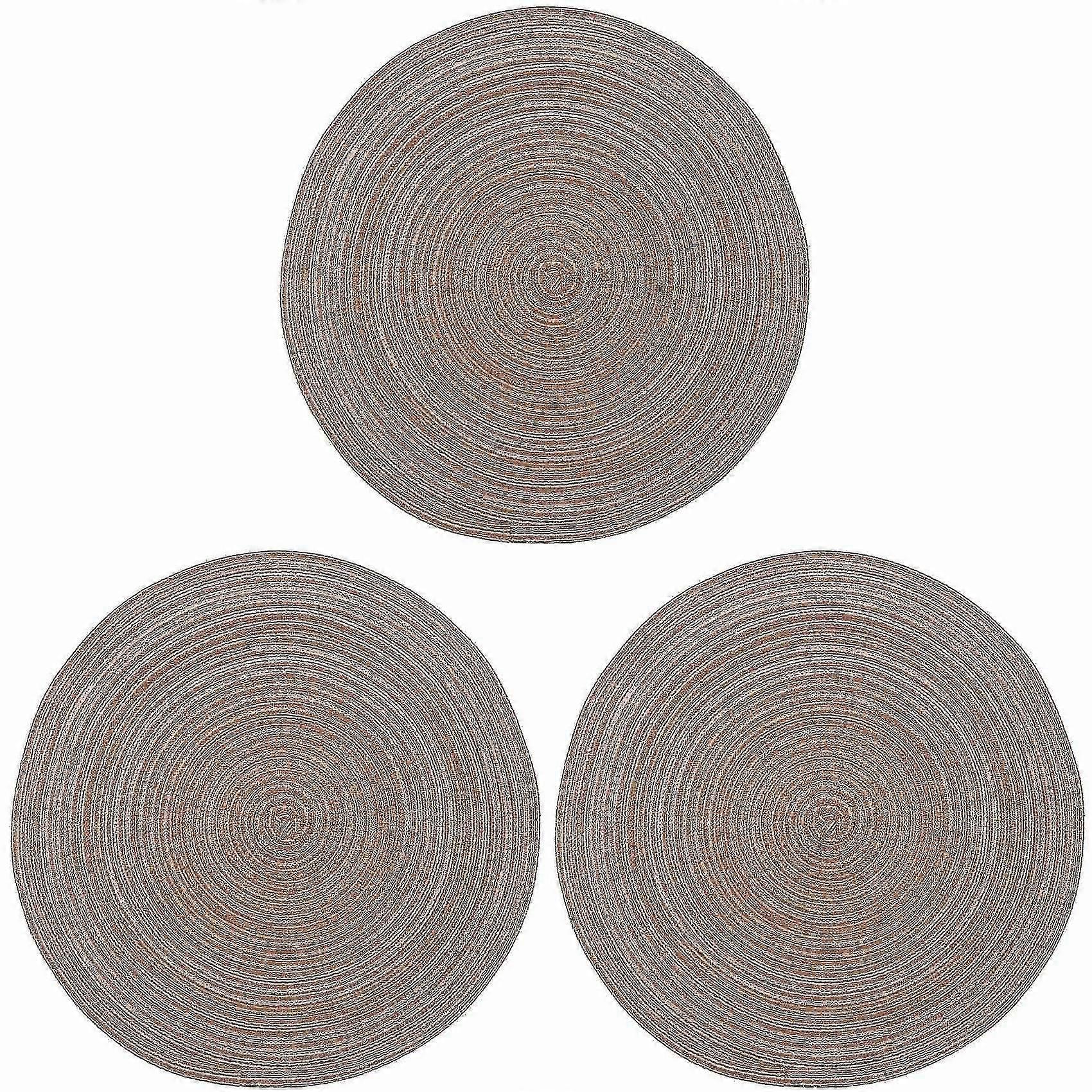 large enough for any plate or bowl.Protect and dress up your tables. Fit rectangular, round and oval tables.Fit almost any kitchen or dining room decoration. Great for everyday use inside or outside. Roll them up or stack them flat for storage.Easy to clean: Wipe clean with damp cloth. Hand wash in cold soap water and air dry.Use round placemats for birthdays, Christmas, housewarming, holiday, parties, family gatherings, weddings, showers, and more.Product Name:Round Braided PlacematsWeightLightweight, about 0.2kg, 0.4lbAdvantages:1) Protects your tabletop from scratches and stain from food or drinking glasses. You can use it on all kinds of tables, dining tables, tea tables,coffee tables in home, wedding, party, hotel, business office2) Looks elegant, colorful and stylish,decorates your table and gets you lots complimentscolour:Coffee colorMaterial:Polypropylene + cottonsize:Diameter: 36CMPackage Contents:12 * PlacematsNotes:1) Don't clean it by the washing machine, but to wipe clean or hand wash with soapy water directly.2) Not Waterproof.3) If there is a crease on it, just allow it to rest for several days, reverse rolling the mat or put heavy things on the crease. Steam iron flat below 80 degrees.Only the above package content, other products are not included.Note: Light shooting and different displays may cause the color of the item in the picture a little different from the real thing. The measurement allowed error is +/- 1-3cm.