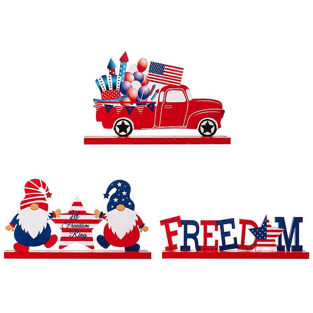 Home Patriotic Decor Independence Day Wooden Tabletop Decor Classic Design Red Blue White Car Shape 3Pcs
