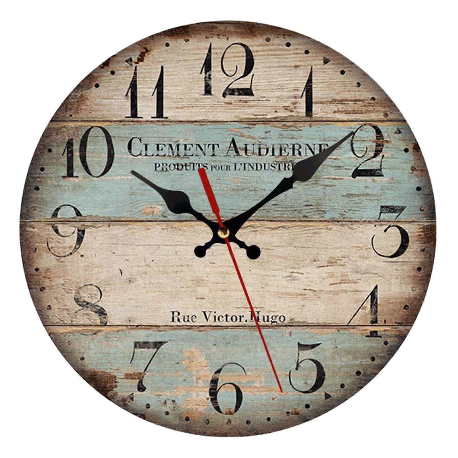 Home 12 Inch Silent Vintage Wooden Round Wall Clock Arabic Numerals Vintage