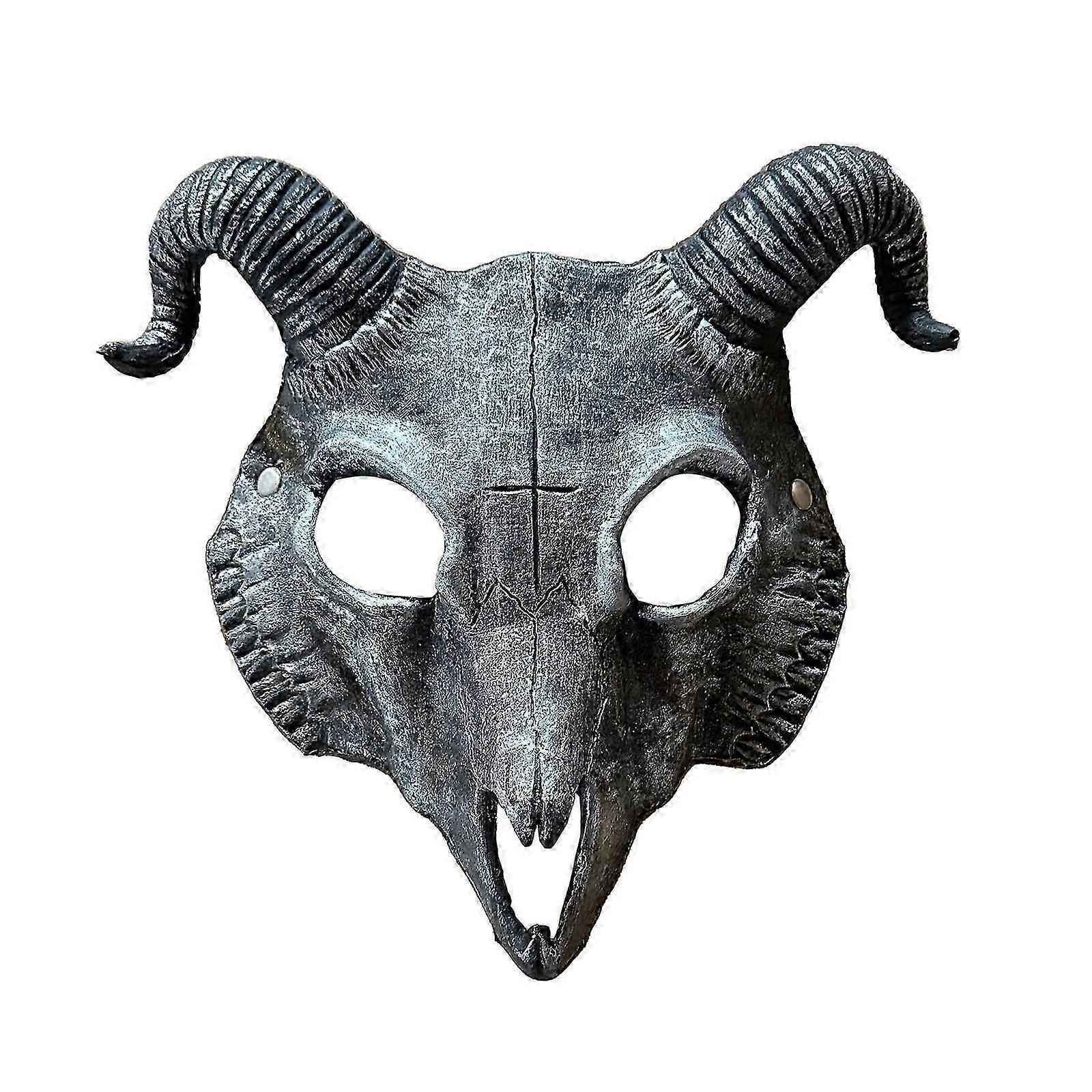 Goat Mask with Horn Halloween Carnival Party Prop Animal Head Bone Mask Costume for Men Women Devil Cosplay