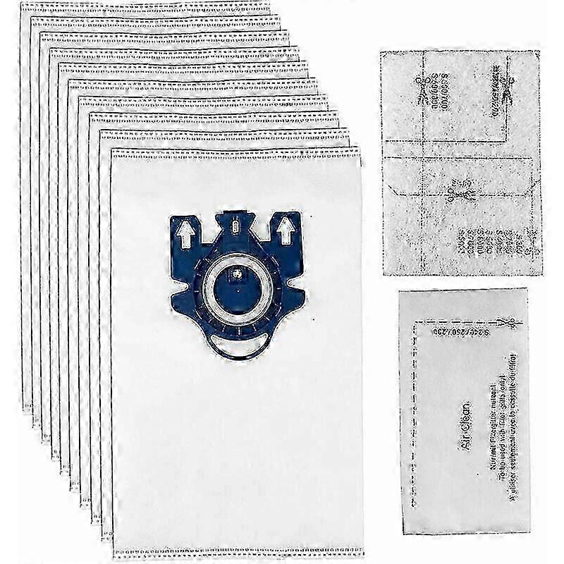 Sanitary Shutter andamp; Self-Locking Seal : Keep your living space cleaner and safer with our vacuum bags' self-locking seal mechanism. It ensures that no dust escapes back into your home, maintaining a healthier environment. Microfiber Material : Experience superior cleaning power with our 5 layers of microfiber material, designed to filter out 99% of fine particles, including dust and allergens, leaving your home fresh and clean. Motor Protection Filters : Protect your vacuum cleaner's motor from dust and debris with our advanced motor protection filters, extending the life of your cleaning appliance. Compatibility : Designed for seamless use with Miele HyClean 3D Efficiency GN Classic C1, Complete C2, Complete C3, and more, ensuring a perfect fit for your trusted cleaning companion. Value Pack : Get more for less with our value pack, offering 10 replacement bags and 2 filters, perfect for maintaining top-notch performance over time. In a world where cleanliness is key, our Microfiber Vacuum Bags with AirClean Technology stand out as the ultimate solution for your home cleaning needs. Engineered with precision, these bags are not just another accessory but a vital component in maintaining a healthy and dust-free environment. Designed specifically for compatibility with Miele vacuum cleaners, they offer unparalleled efficiency and durability. Note: Due to the light and screen setting difference, the item's color may be slightly different from the pictures. Please allow slight dimension difference due to different manual measurement.