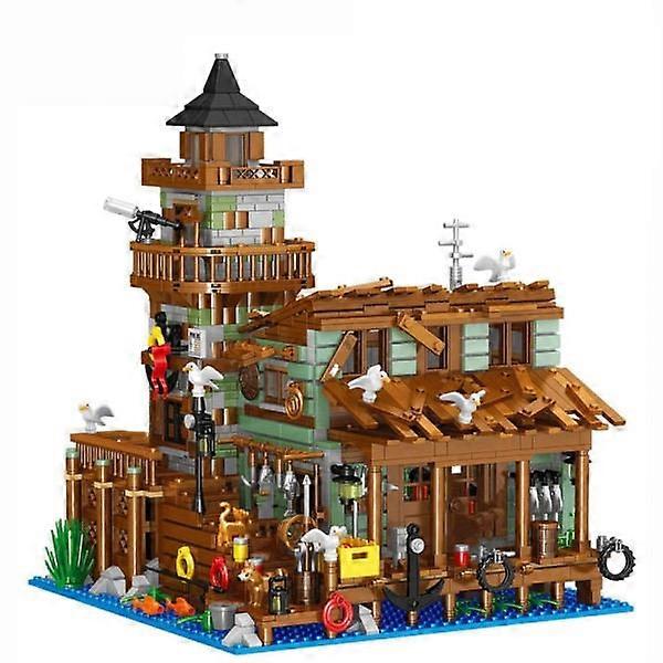 Build your own charming fishing village with this creative Micro Fisherman's Hut Wharf Wooden House Model Building Blocks set. Unleash your creativity with these detailed street view building bricks, perfect for creating a delightful fishing village scene. A fun and engaging toy for children.