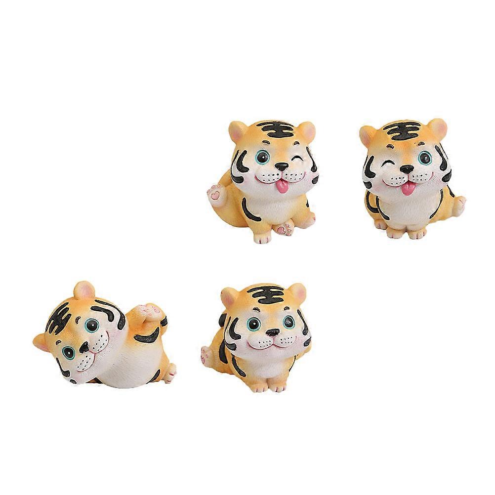 Cute Car Accessories Featuring Tiger Shape For Micro Landscape Decoration 7X5X4CM 4Pcs