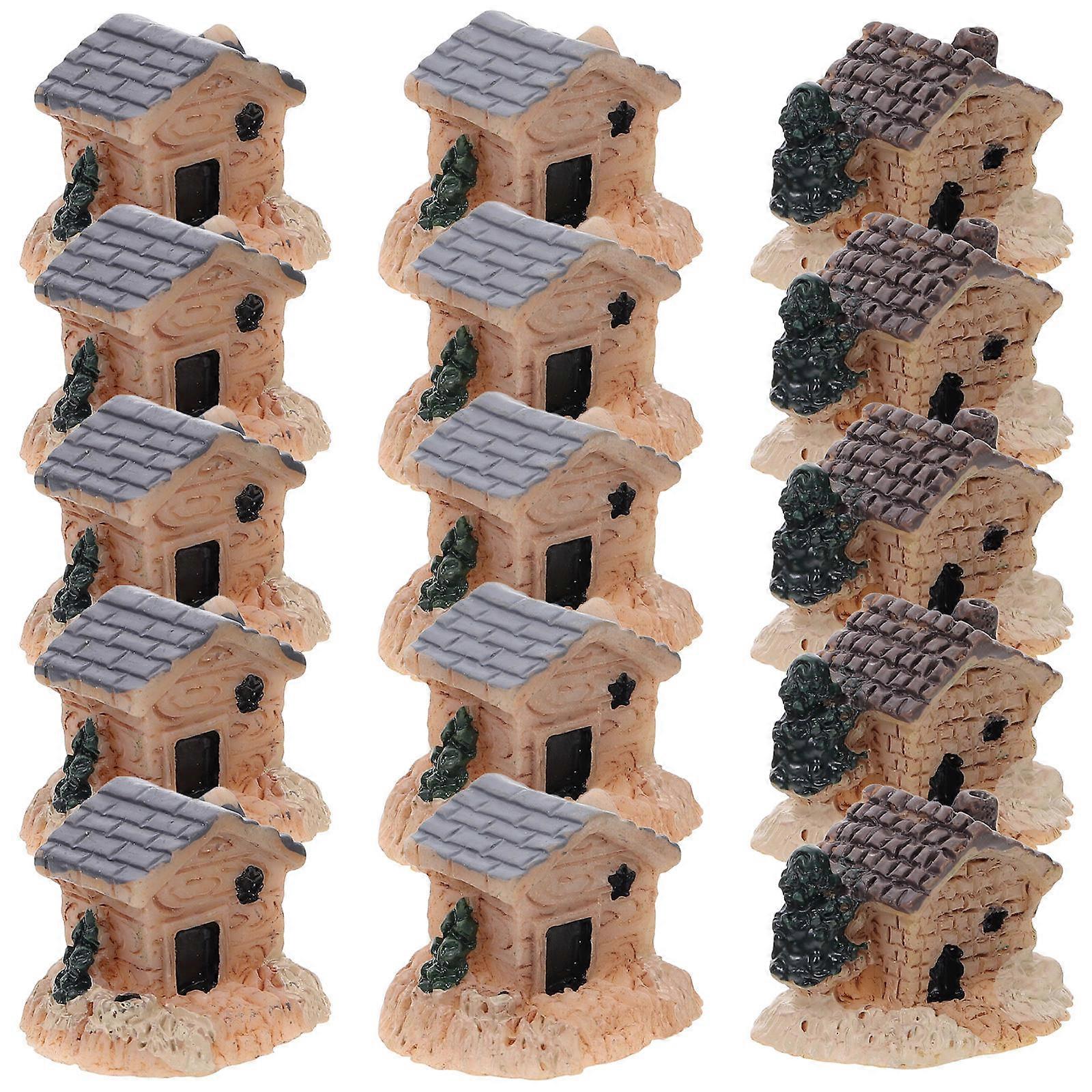 15 Pcs Mini House Shaped Resin Models for Micro Landscaping Decor