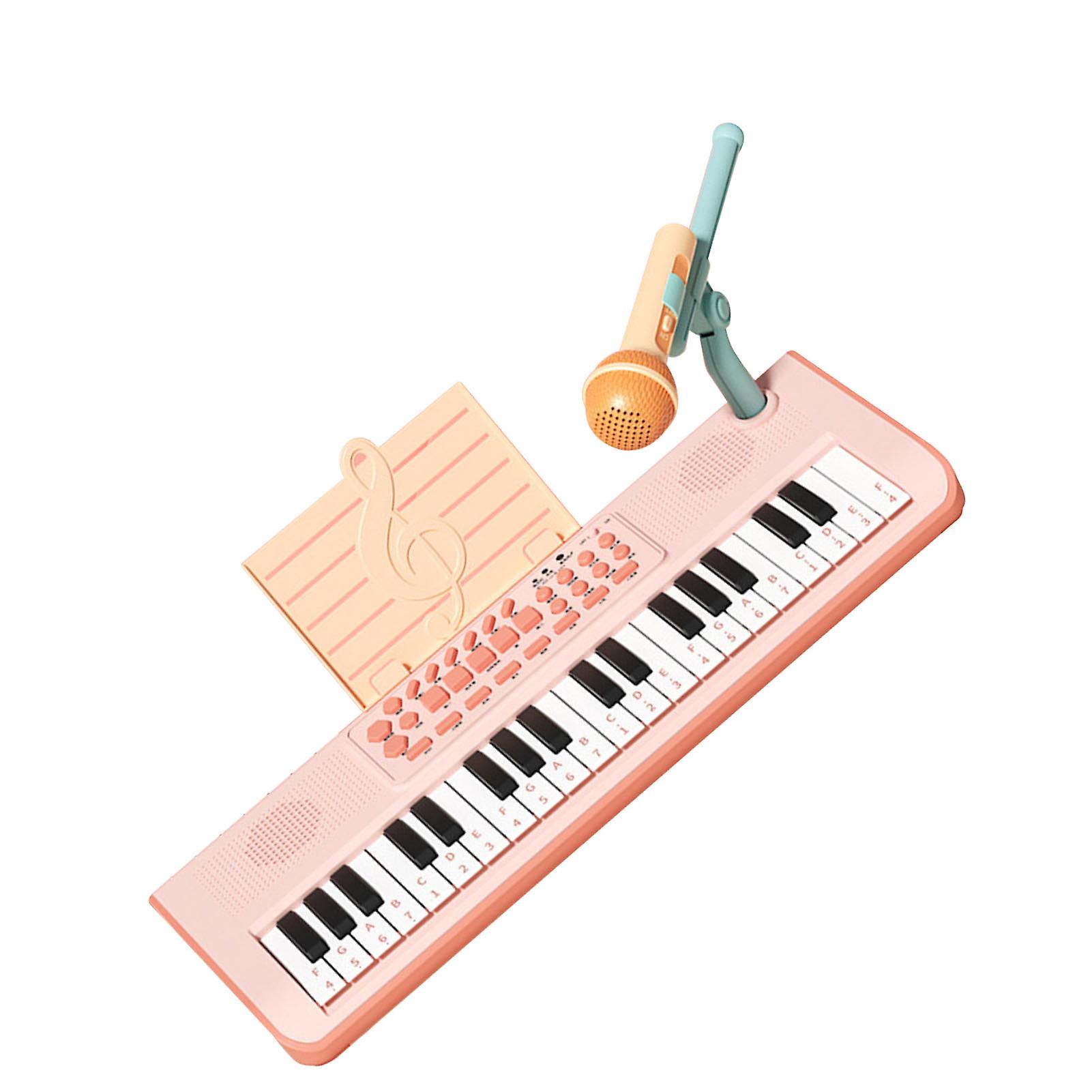 37 Keys Electronic Organ with Microphone Kids Electric Piano Kit Music Keyboard Educational Toy Built in Battery Pink