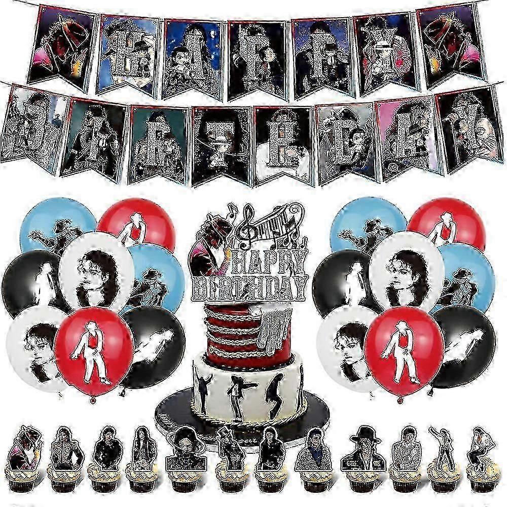 Michael Jackson Theme Birthday Party Decor Supplies Balloons Kit Banner Cake Toppers Set