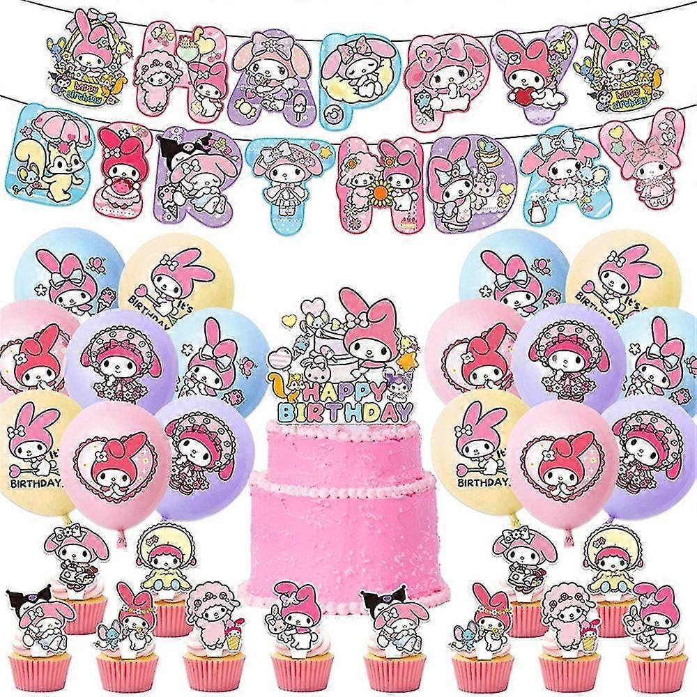 My Melody Cartoon Kids Girls Birthday Party Decorations Supplies Kits Includes Happy Birthday Banners Balloons Cake/Cupcake Toppers Set