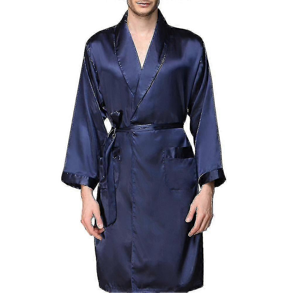Mile Men's Summer Luxurious Kimono Soft Satin Robe Long-sleeve Nightgown Printed Pajamas Bathrobes