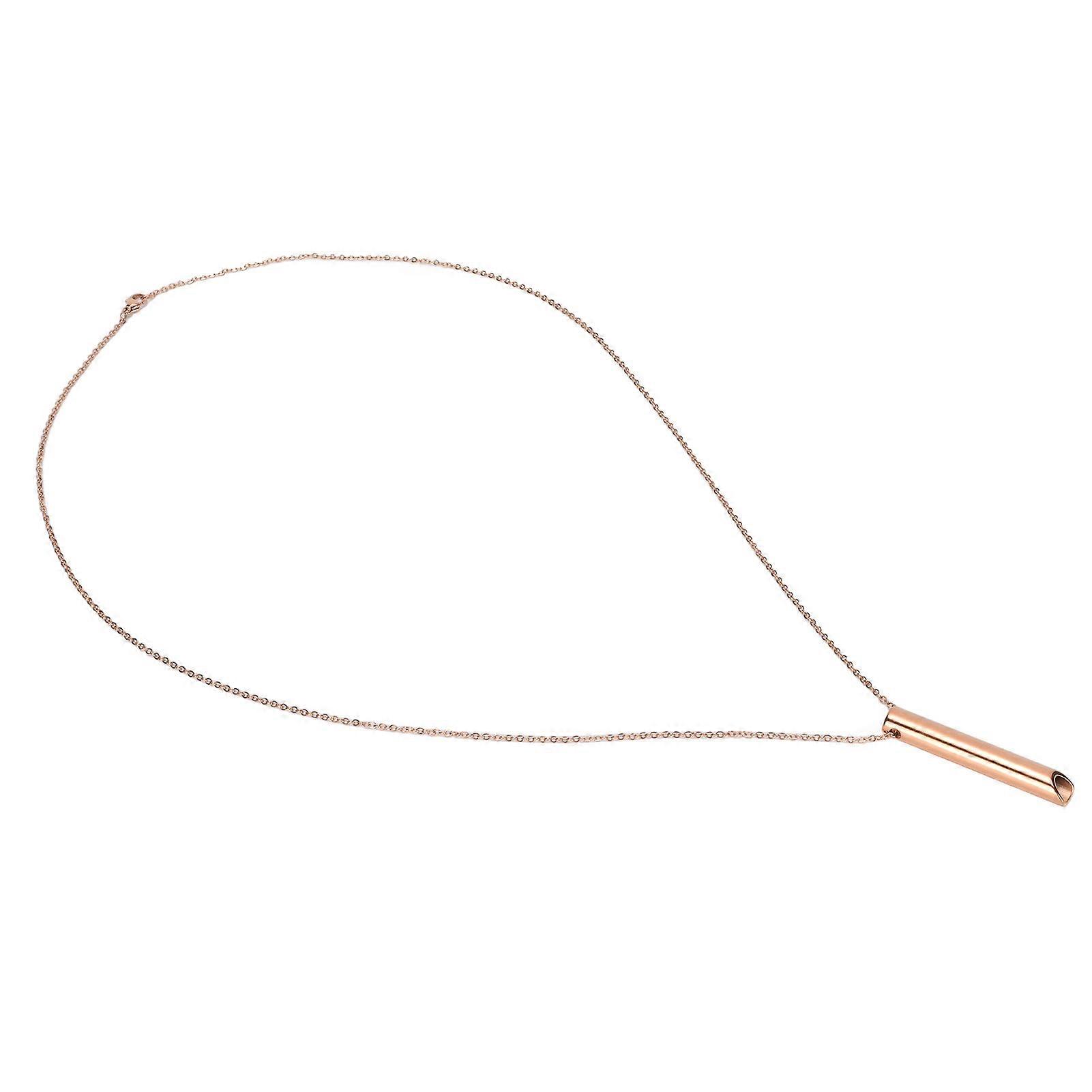 Mindful Breathing Necklace Stainless Steel Reduces Stress Portable Anxiety Whistle Necklace for Women and Men Rose Gold
