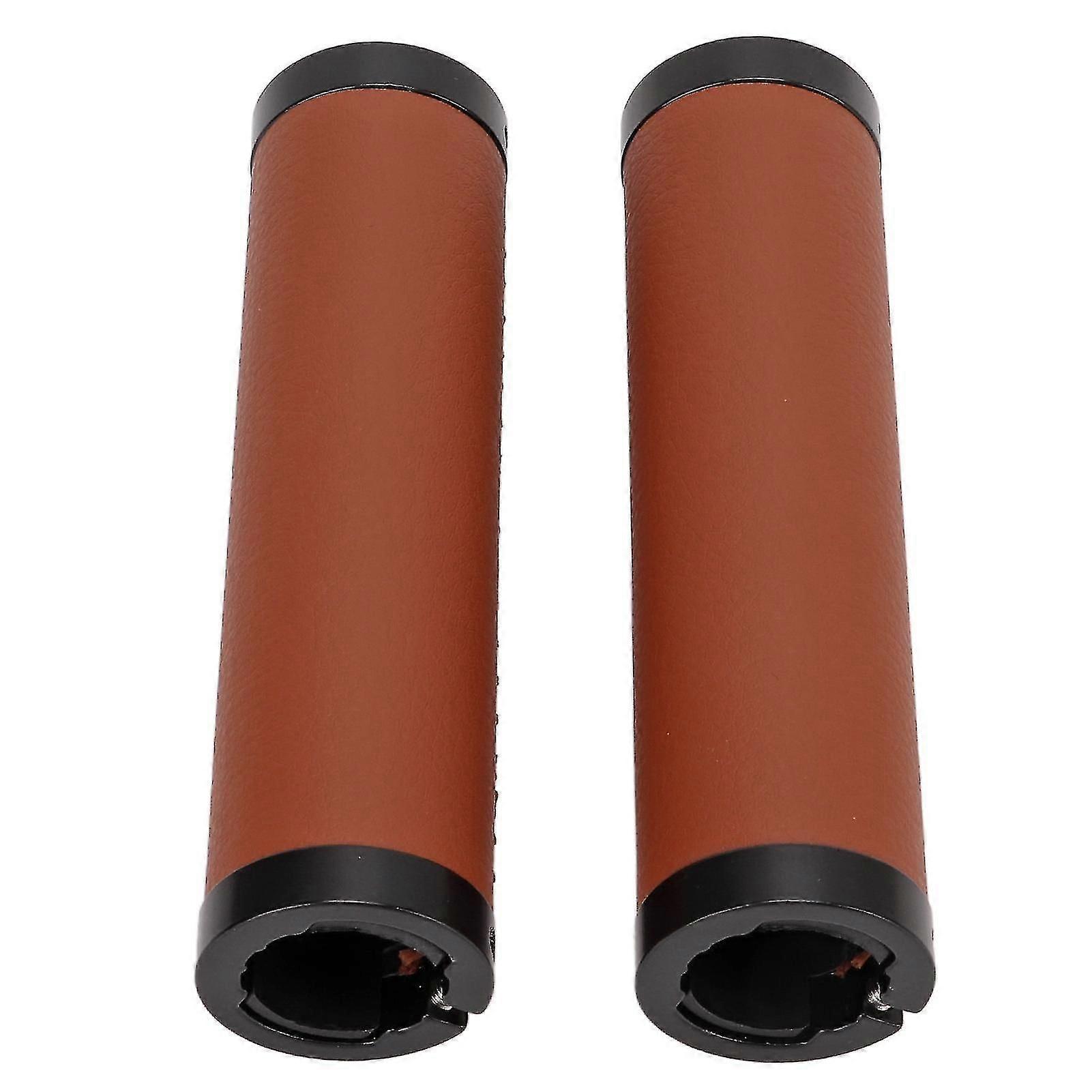 Mountain Folding Bikes Soft Fiber Leather Shockproof Bike Grips with End Cover Brown
