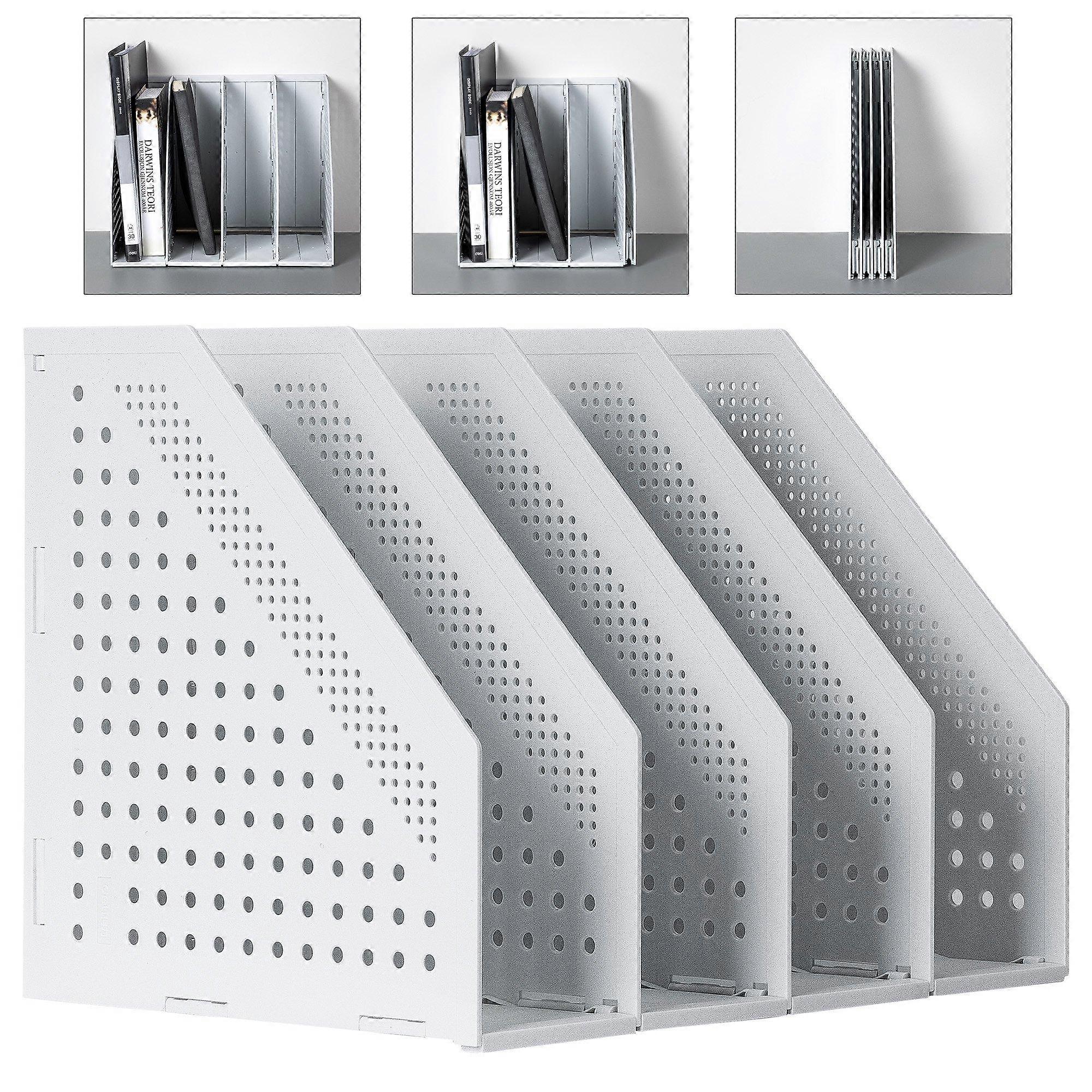 Magazine File Holder Collapsible Magazine Rack Desk Organizer for Organization and Storage, 4 Vertical Compartments 1pcs(D-)