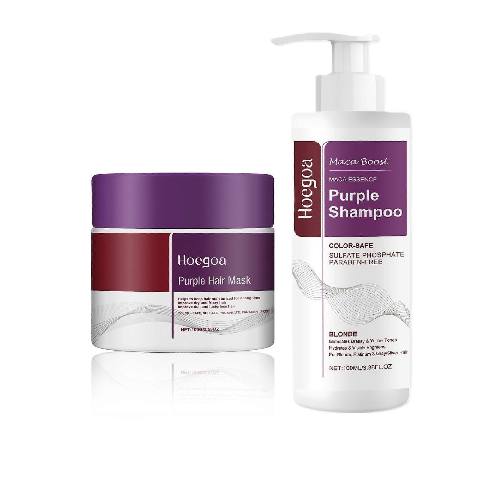 Maca Purple Hair Mask and Purple Shampoo Set, Maca Essence Purple Shampoo, Neutralizes Brass & Yellow Tones For Blonde Silver Gray Highlighted Hair