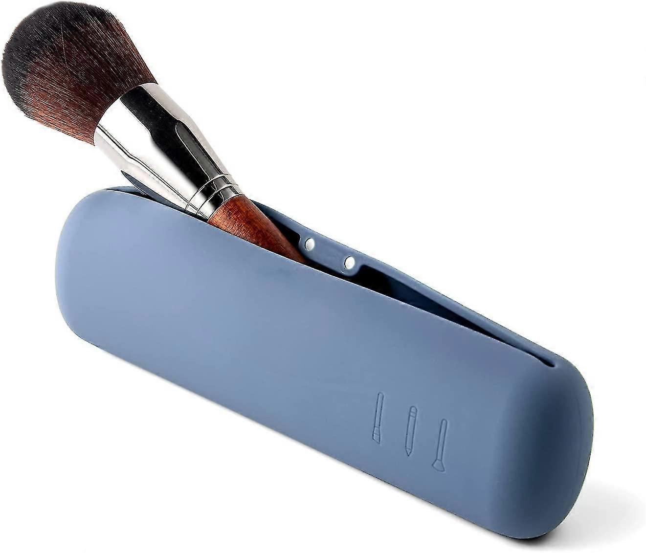 Travel Makeup Brush Case with Magnet Closure Portable Cosmetic Brush Organizer Pouch - Blue