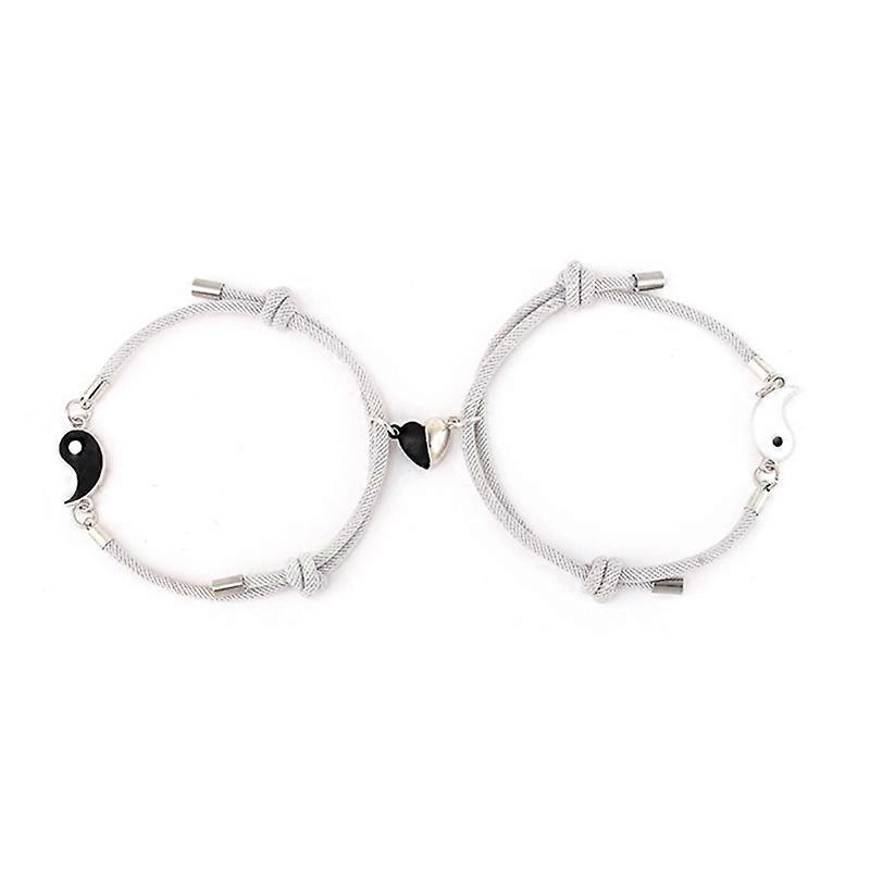 Magnetic Heart Charm Yin Yang Set Matching Tai Chi Bracelets Gift for Him Her