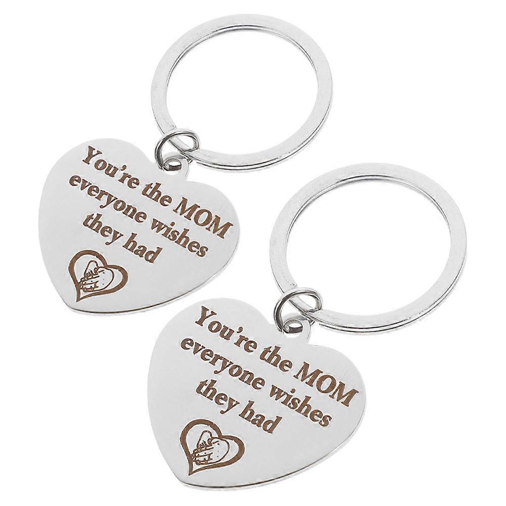 Mother Keyring Portable Metal Keychain Pendant Heart-Shaped for Bag Purse Decorations Silver 3.40X3.30X0.40cm Engraved 2Pcs