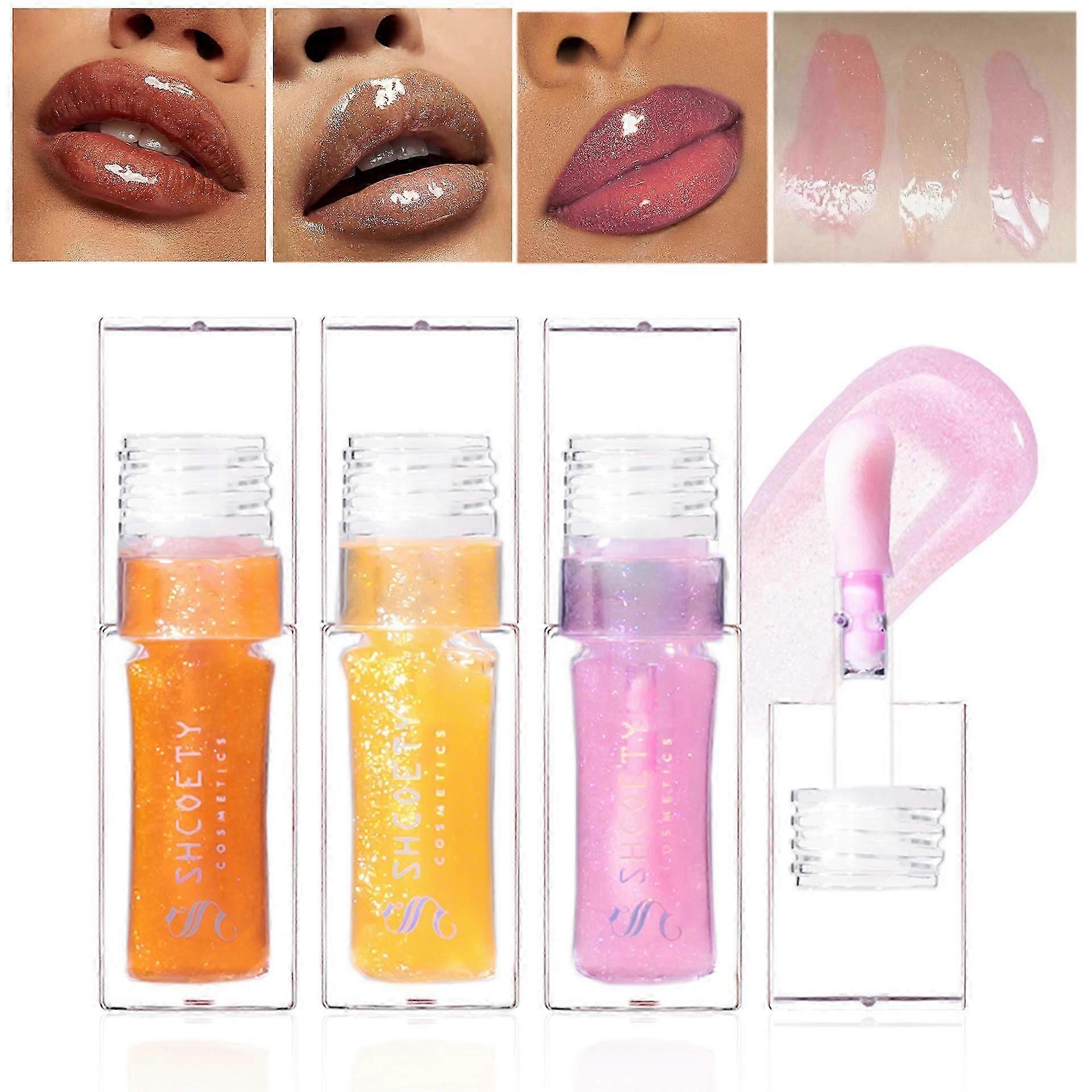 Magic Color Changing Lip Oil, Moisturizing Lip Glow Oil, Plumping Shimmer Big Brush Tinted Lip Balm Lip Care, Long Lasting Nourishing Non-sticky Fresh
