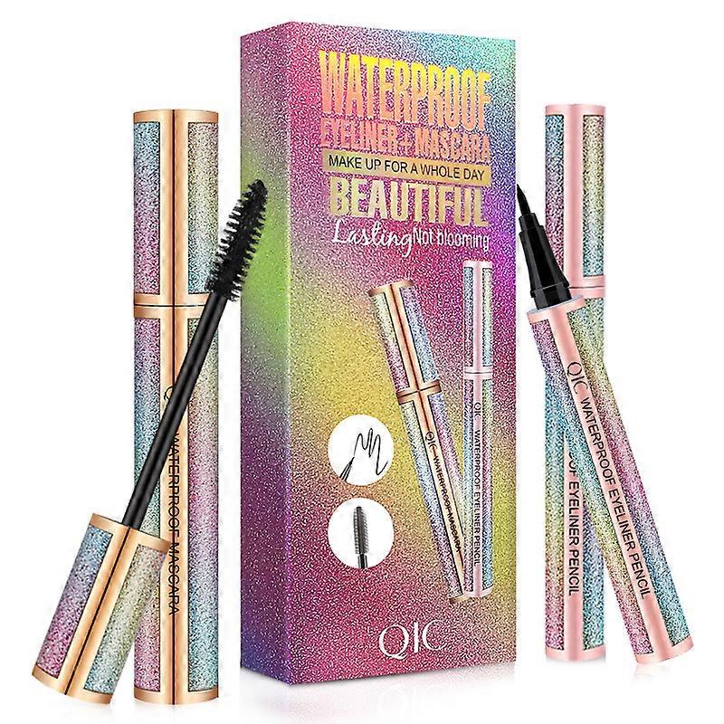 Mascara Eyeliner Set, 4D Silk Fiber Eyelash Mascara, Long Lasting Waterproof, Extension Thickening Lengthening Voluminous Mascara, Natural Smudge-Proo
