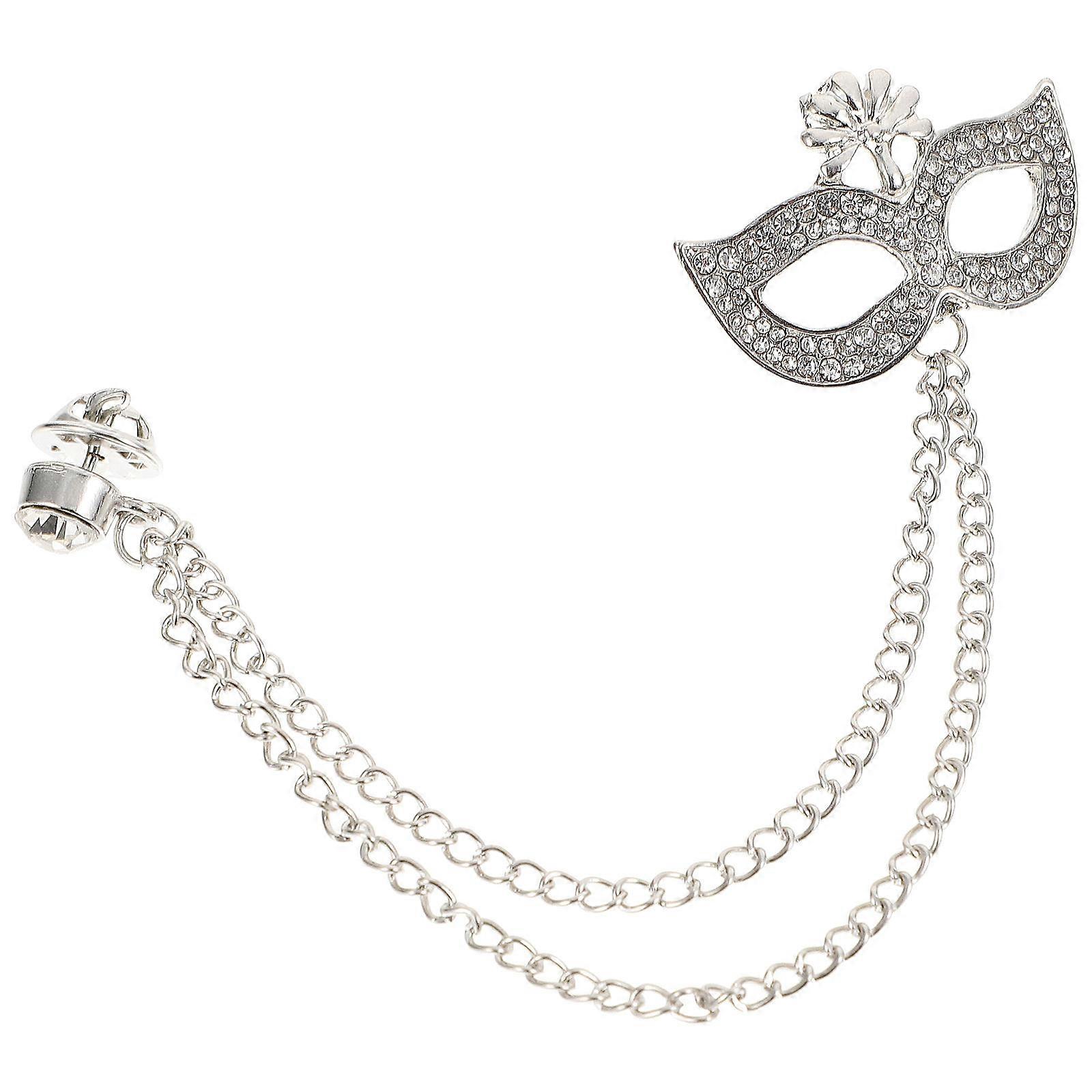 Mask Shape Chain Lapel Pin Jewelry Brooch For Women And Girls In Stylish Appearance With Silver Color 1Pcs
