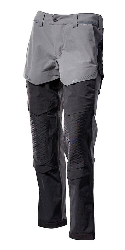 Introducing the Mascot Lightweight Durable Stretch Trousers With Knee Pad Pockets 22279-605, Customized - your ultimate workwear solution designed for both durability and comfort. Crafted from ULTIMATE STRETCH fabric, these trousers are not only lightweight but also boast a highly durable construction, ensuring they can withstand the rigors of any job. The water-repellent finish keeps you dry in damp conditions, while the ergonomic design and ventilation openings at the knees and waistband promote airflow, keeping you cool throughout the day. Prepared for holster pockets with the innovative Click Pocket System, and featuring double and triple stitched seams on the leg and crotch for added resilience, these trousers are built to last.Functionality meets comfort with these trousers, thanks to the adjustable kneepad pockets made from super durable CORDURA® fabric, ensuring your knees are protected without sacrificing quality. The trousers come equipped with a multitude of pockets, including a thigh pocket with a phone pocket that has a magnetic fastening and an integrated ID card holder, a detachable ID card holder, and a CORDURA® fabric reinforced ruler pocket. For added convenience, there's a hidden tool strap on the left side, and the fly with zip makes them easy to wear. Reflectors for visibility, press stud adjustment at the foot for a perfect fit, and compatibility with various kneepad types (recommended models: 00418-100, 00718-100, 50451-916, and 20118-915) co-certified with EN 14404 standards, make these trousers a must-have for professionals seeking both protection and comfort on the job.Key Features and Benefits ULTIMATE STRETCH fabric that is lightweight and highly durable Has a water-repellent finish Prepared for holster pockets with Click Pocket System Double and triple stitched seams on leg and crotch Ergonomically formed trouser leg Ventilation openings at the backs of the knees and by the waistband Belt loops Hidden tool strap on left side Fly with zip Mesh with ventilation at the sides - opens with zip Front pockets Back pockets: one with flap CORDURA® fabric reinforced ruler pocket with small internal pocket Button (detachable) for attaching knife holder Thigh pocket with phone pocket with magnetic fastening and integrated ID card holder Detachable ID card holder Thigh pockets with flaps Adjustable kneepad pockets with ventilation in super durable CORDURA® Simple individual adjustment of kneepad pocket height Press stud adjustment at foot Reflectors We recommend 00418-100, 00718-100, 50451-916 and 20118-915 kneepads for this model Co-certified together with kneepad type SHORT or LONG in accordance with EN 14404 Durable, ultra-light stretch material ensures unique freedom of movement Add your favourite holster pockets using the Click Pocket System Extra ventilation for maximum comfort, each and every day Extremely durable, kneepad pockets in CORDURA® protect your knees without compromising on quality Water and dirt-repellent surface treatment CertificationsOEKO-TEX® STANDARD 100Materials 89% recycled polyamide/11% elastane 180 g/m² ULTIMATE STRETCH. Shrinkage max. 3%. Colour 0689: 83% recycled polyester/17% elastane. Washing Instructions and Product CareMax. 40° C; Do not bleach; Do not tumble-dry; Do not iron; Normal dry cleaningProduct DocumentsMascot 22279-605 Product Spec.
