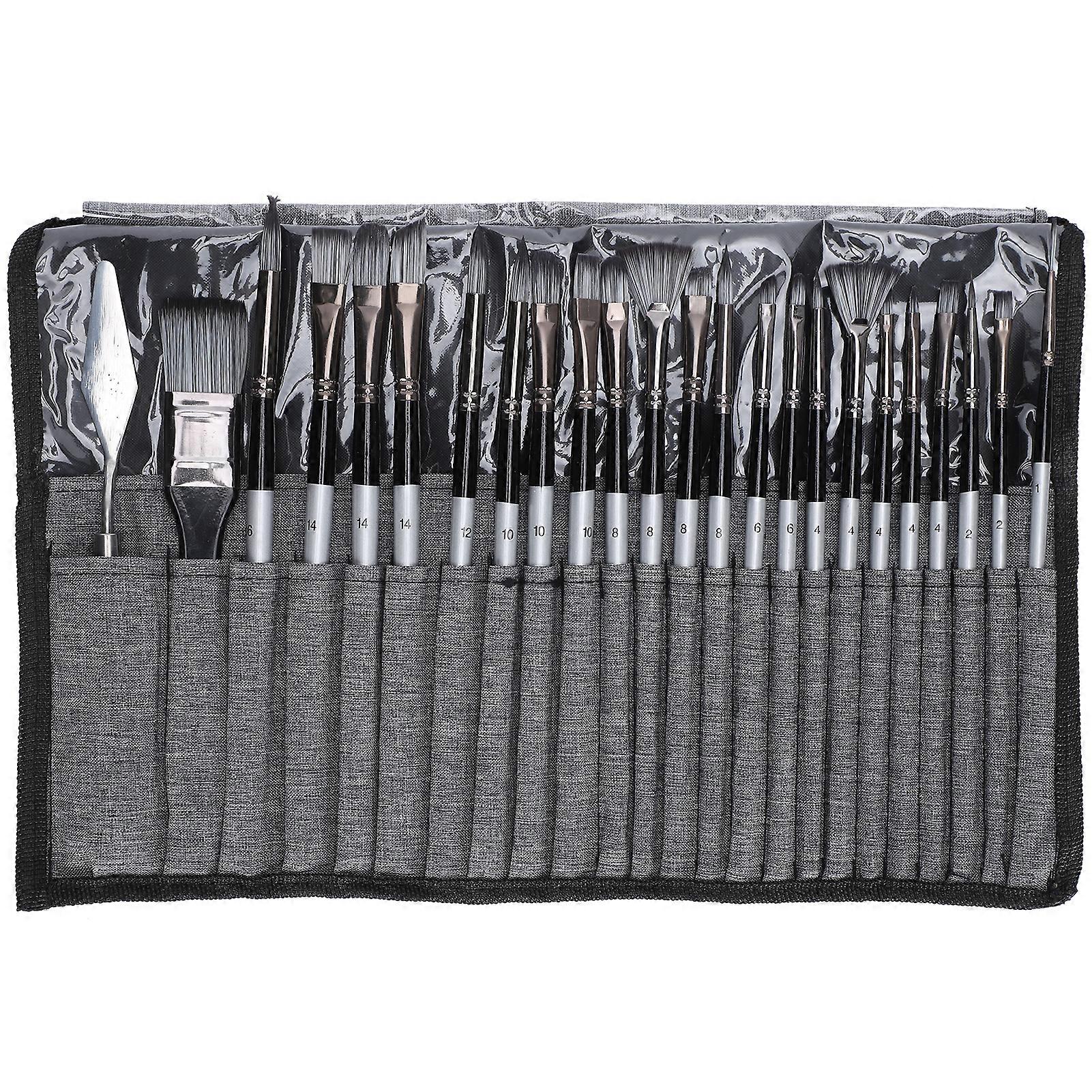 Master's Palette, 24Pcs Paint Brush Set, Perfect for Oil & Watercolor, Palette Knife, No Shedding, Waterproof & Oil-Proof Canvas Case