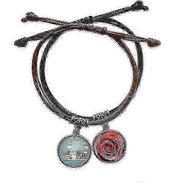 Mas House Festival Illustration Bracelet Rope Hand Chain Leather Rose Wristband