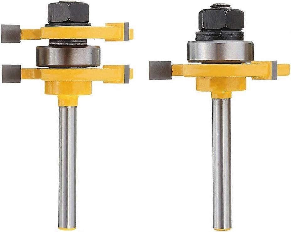 Matched Tongue and Groove Router Bit Set, 1/4 Inch Shank 3 Teeth T Shape Milling Cutter Woodworking Cutting Tool2pcs)