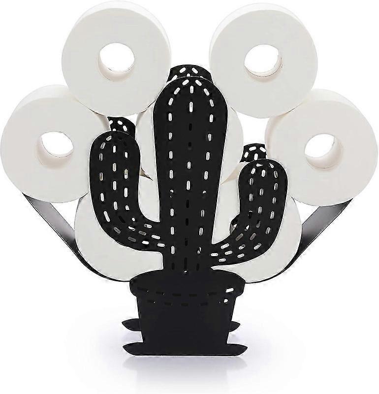 Matte Black Cactus Toilet Paper Holder Metal Roll Stand Wall Mounted or Freestanding Bathroom Tissue Storage Rack