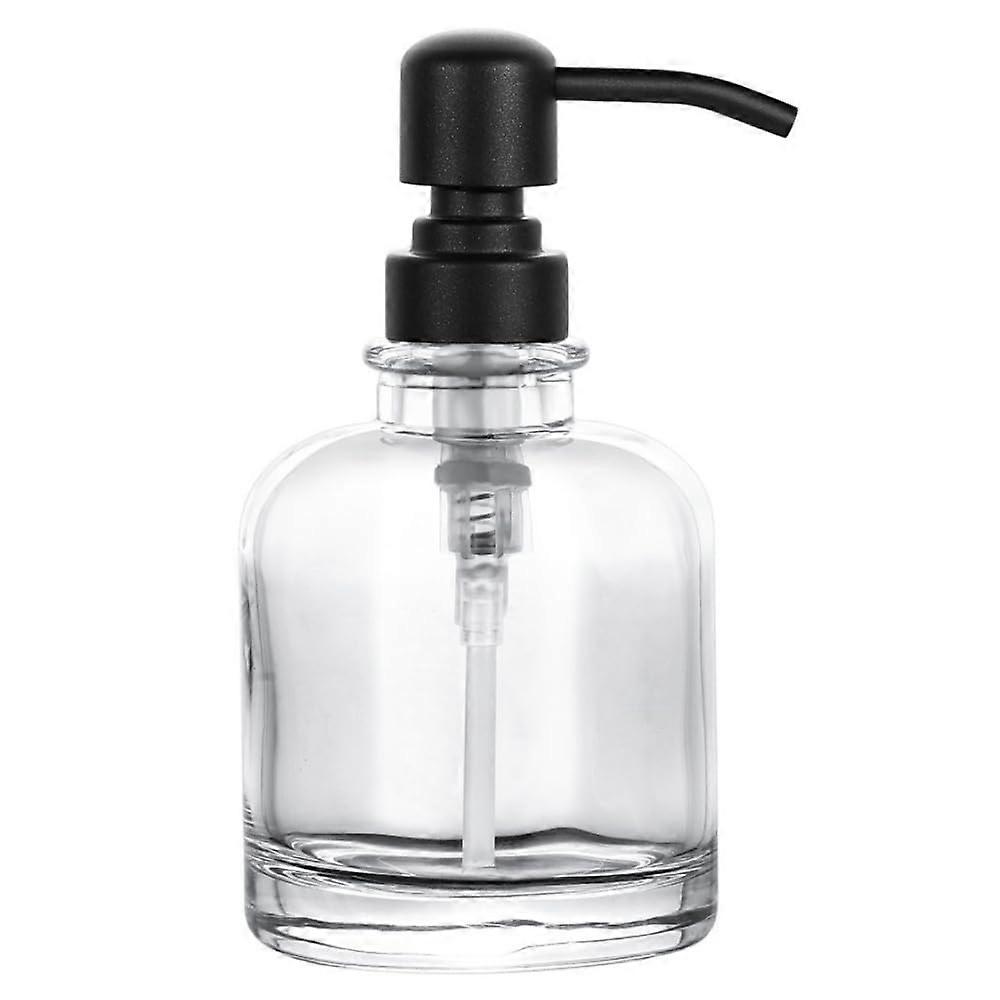 Mat Black Stainless Steel Pump Thick Transparent Glass Jar Soap Dispenser for Bathroom and Kitchen, 12oz Boston Round Bottle