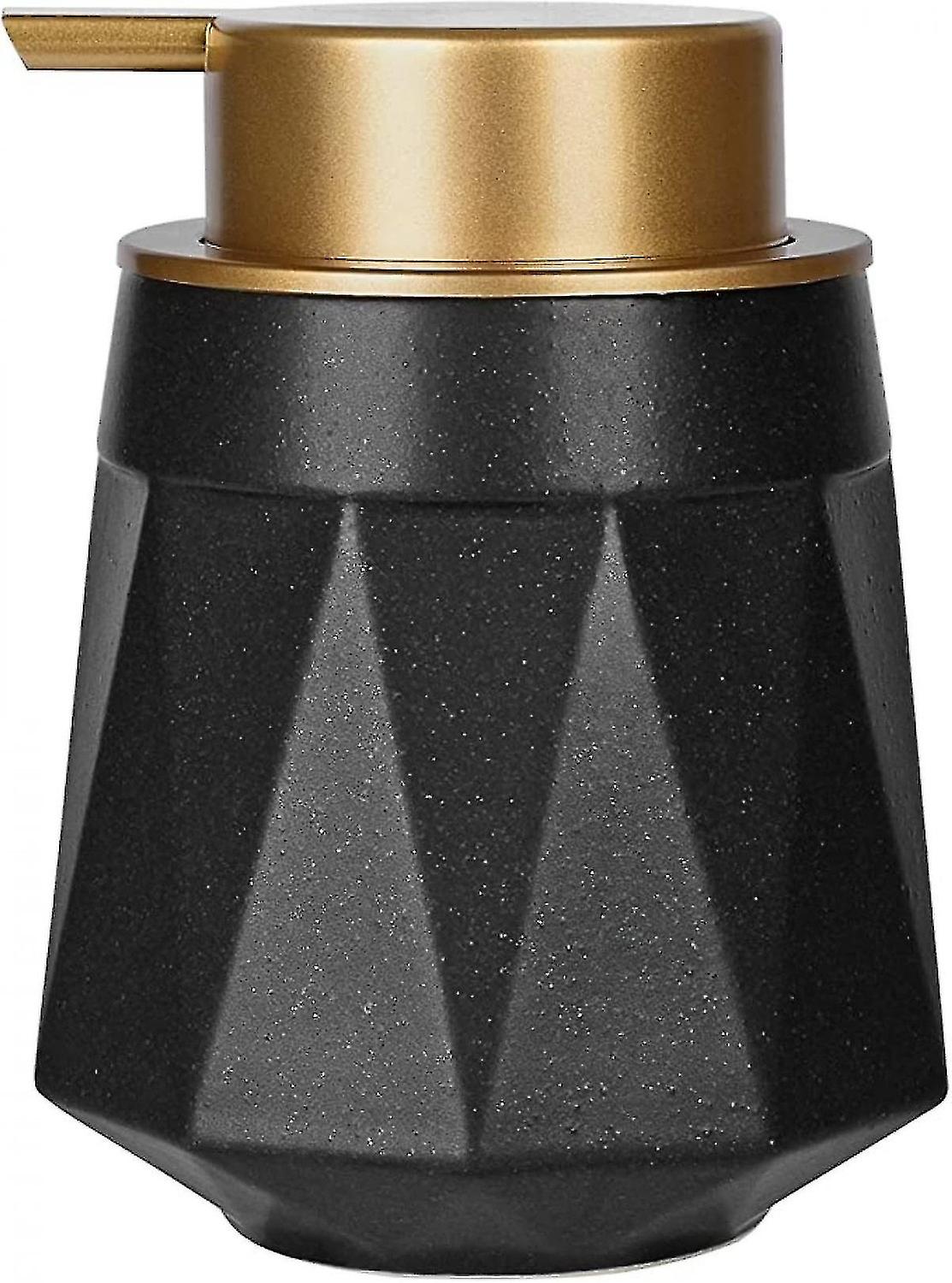 Matte Black Soap Dispenser - Ceramic Lotion Dispensing Bottle with Gold Hand Pump Refillable Dishwas