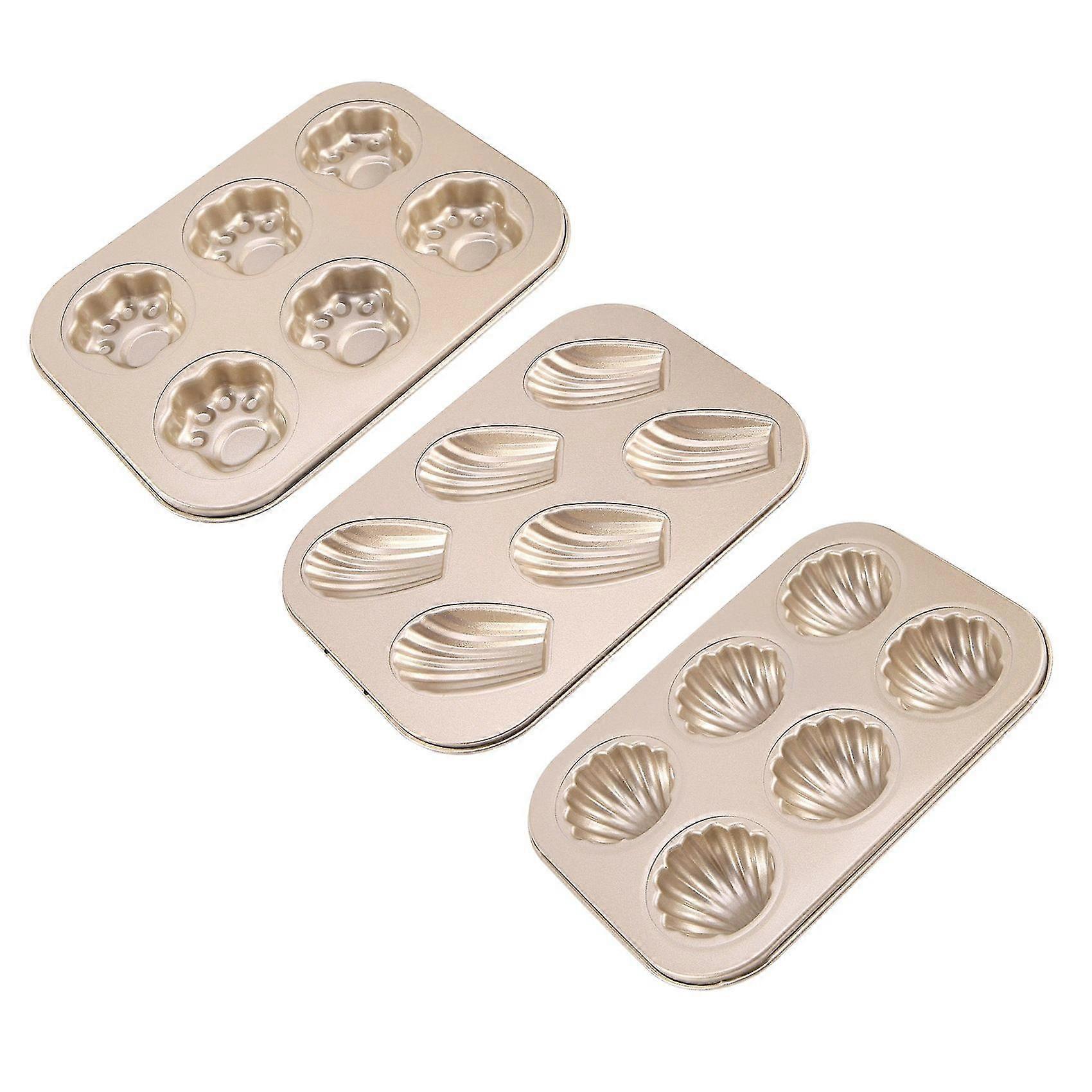 Madeleine Pans,3 Pack Nonstick Cat Claws Shape Baking Pans, Carbon Steel Baking Mold, 6 Cavity Baki