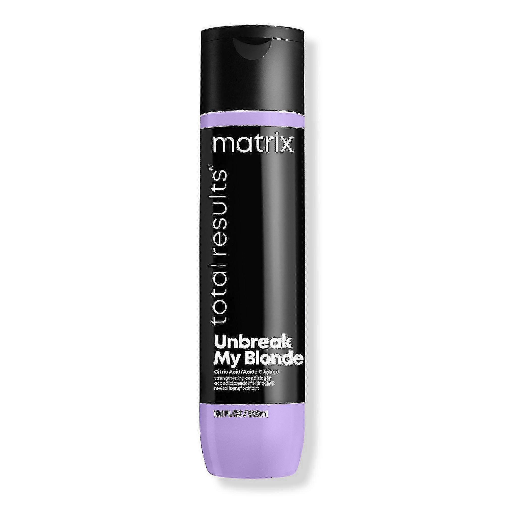 Matrix's Total Results Unbreak My Blonde Conditioner is a bond strengthening conditioner developed to revive all types of lightened hair. This highly-conditioning sulfate-free conditioner deeply nourishes to strengthen and soften damaged hair, leaving hair 3x stronger.*BenefitsReinforces weakened bondsHighly conditioning sulfate-free technologyRevives lightened & over-processed hairLeaves hair soft, shiny & strongerpH balancingPerfect for all hair types & textures3x stronger hair**When used as a system unbreak my blonde shampoo, conditioner, and leave-in versus non-conditioning shampooKey IngredientsInfused with citric acid to strengthen & softenSuggested Use: Use as a complete system with Unbreak My Blonde Shampoo and Reviving Leave-In Treatment. After shampooing, apply and distribute evenly through hair and rinse. Follow with reviving Leave-in Treatment.Expiration Date: We have fresh stock each week with exceptional expiration dates prior to APRIL 2024. Products will expire no later than six months to 1 year after receipt.Product Packaging: Please note that some manufacturer may often change their packaging. This product may arrive different from what is pictured. We will always ship the most up-to-date packaging to our customers. Please contact us if you have any questions about this product or would like to request an older version of this product.Healthcare Disclaimer: Content on this site is for reference purposes only. OTC Shoppe Express does not represent or warrant that the nutrition, ingredient, allergen and other product information on our Web or Mobile sites are accurate or complete, since this information comes from the product manufacturers. On occasion, manufacturers may improve or change their product formulas and update their labels. We recommend that you do not rely solely on the information presented on our Web or Mobile sites and that you review the product's label or contact the manufacturer directly if you have specific product concerns or questions. If you have specific healthcare concerns or questions about the products displayed, please contact your licensed healthcare professional for advice or answers.