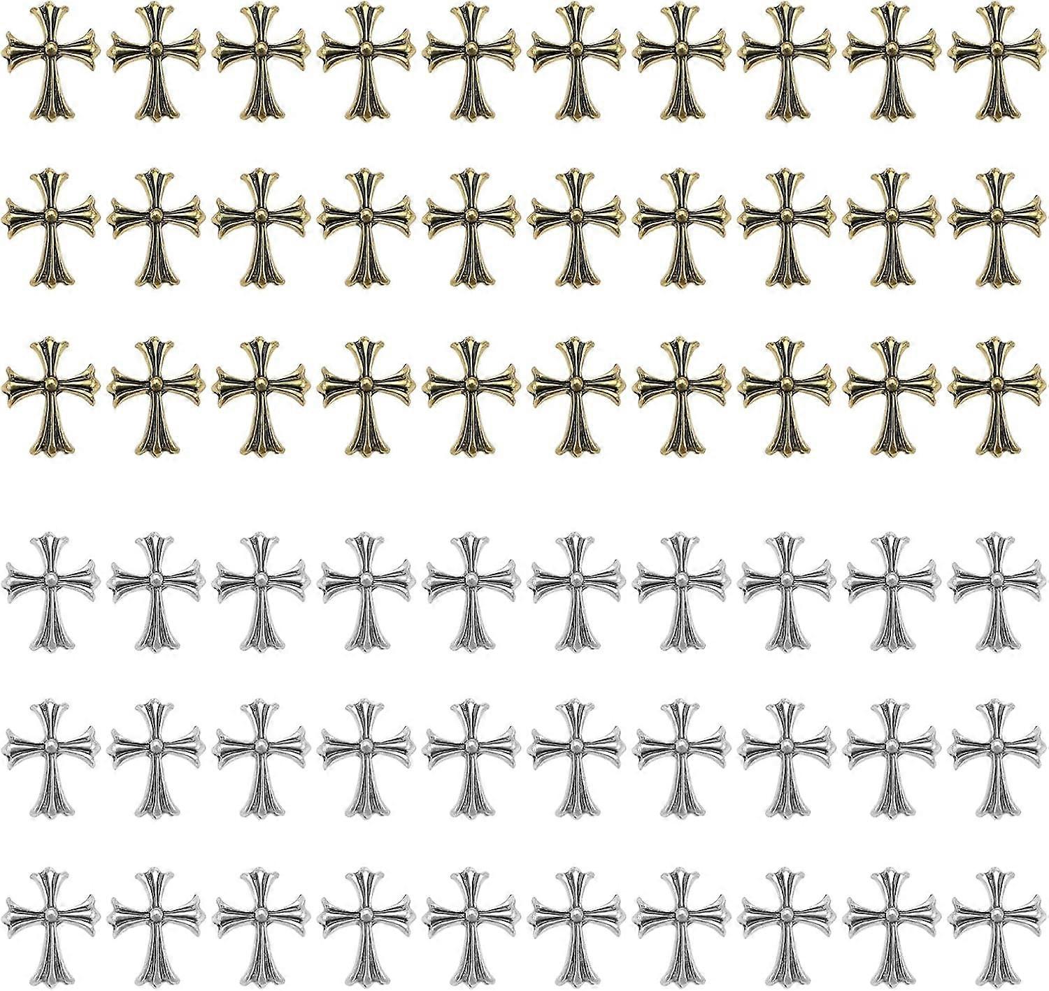 60 pcs Cross Nail Art Metal Beads 3D Punk Nail Decorations for Manicure Nail Art Craft DIY Accessories Decorations Cross Nail Decorations, retro color appearance, full of punk style, 3D dimensional feel, add charm to your nail art. Made of metal, it is strong and durable, not easy to break, wear and fade, and can be used for a long time. Perfect for nail decorations, such as gel nails, acrylic nails, also suitable for DIY hair clips, photo frames, phone cases, etc., to add unique decoration to your craft. You will receive a total of 60 metal beads in antique bronze and silver, each color 30 pcs, the quantity is enough to meet your daily decoration needs. Easy to apply on your nails or remove without damaging your beautiful nails. These beads give you a quick and easy way to design your own nails.