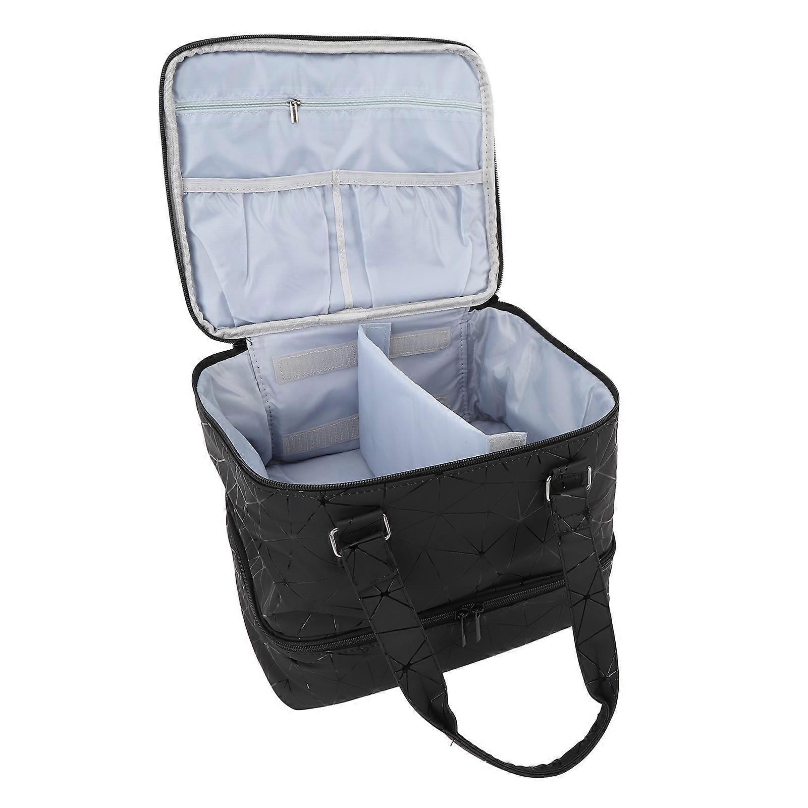 Nail Polish Organizer Case Double Layer Holds 42 Bottles Adjustable Removable Water Resistant PU Nail Polish Travel Case Bag Black