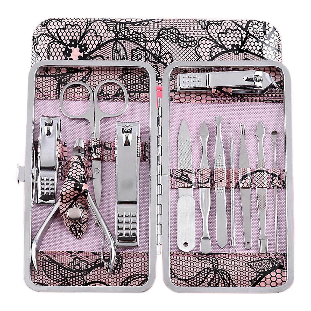 Manicure Set Nail Clippers Kit Pedicure Care Tools- Stainless Steel Grooming Kit 12Pcs for Travel or Home (Pink)