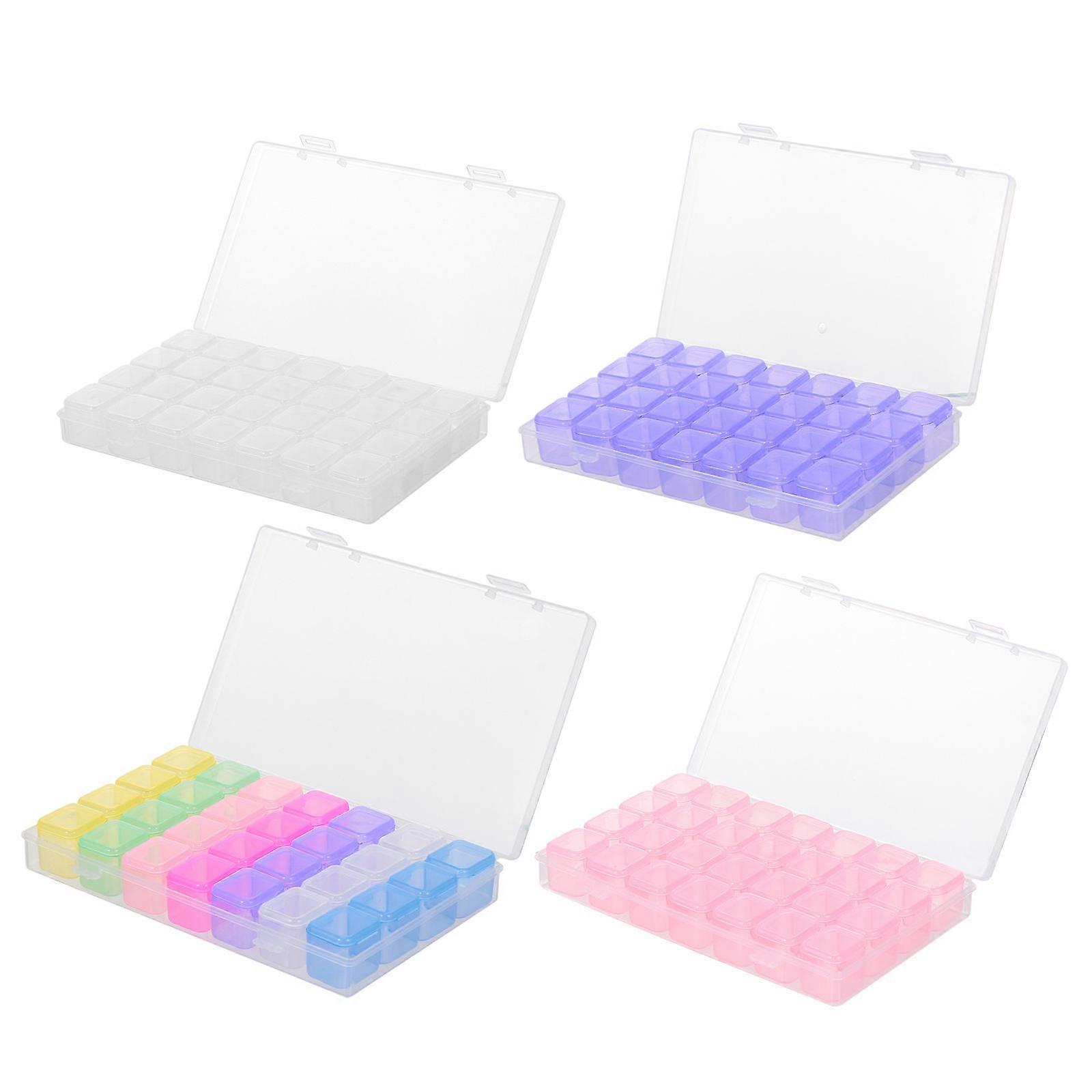 Portable Plastic Storage Case for Manicure Tools and Diamond Drills with 28 Compartments Assorted Color