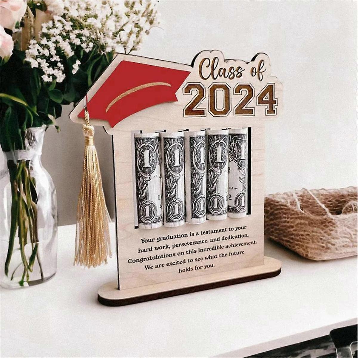 Description: Celebrate your loved ' graduation in style with our beautiful wooden graduation card money holder. Bring a thoughtful touch to their special day with unique graduation theme elements. Perfect for collection and decoration, this card holder is designed to hold money and cards securely. perfect for your 's graduation. Points: 1.Excellent Holder: Add a unique touch to your graduation gift with our money holder. Suitable for all sizes of money, our holder enables you to effortlessly place rolled up bills. This for the Class of 2024 is available to make a thoughtful delight. 2.Graduation-Inspired Money Holder: Featuring a graduation hat motif and celebratory message, this holder exudes a festive atmosphere, perfect for congratulating graduates. Show your support in style with this graduation-inspired accessory. Enhanced Display: Showcase your graduation achievement with this money holder that doubles as a display piece; perfect for adding unique decor to any room. Responsible and Enduring: Made of wooden material, this graduation money holder is not easy to deform or break. It is and strong, so you can carry it with confidence. It can stay with you for a long time, as a reminder of your achievement. Holiday Gifts: Help your , sister, son, daughter, or friend celebrate their special milestone with this graduation money holder. Safely stash their cash, checks, or gift cards in a fun and stylish way. Tips: The product may be updated constantly ,Due To Different Batches, The Actual Product May Have Slight Differences Or Color Differences, Which Does Not Affect Use color:Black Material: Wood Money is not included, only the wallet. Due to the angle, the light is not used. There is a color difference between the actual object and the picture, which does not affect the applicability. Package Contents: 1pc Graduation Season Money Clip Only the above package content, other products are not included.Note: Light reflection and different displays may cause the color of the item in the picture a little different from the real thing. The measurement allowed error is +/- 1-3cm.