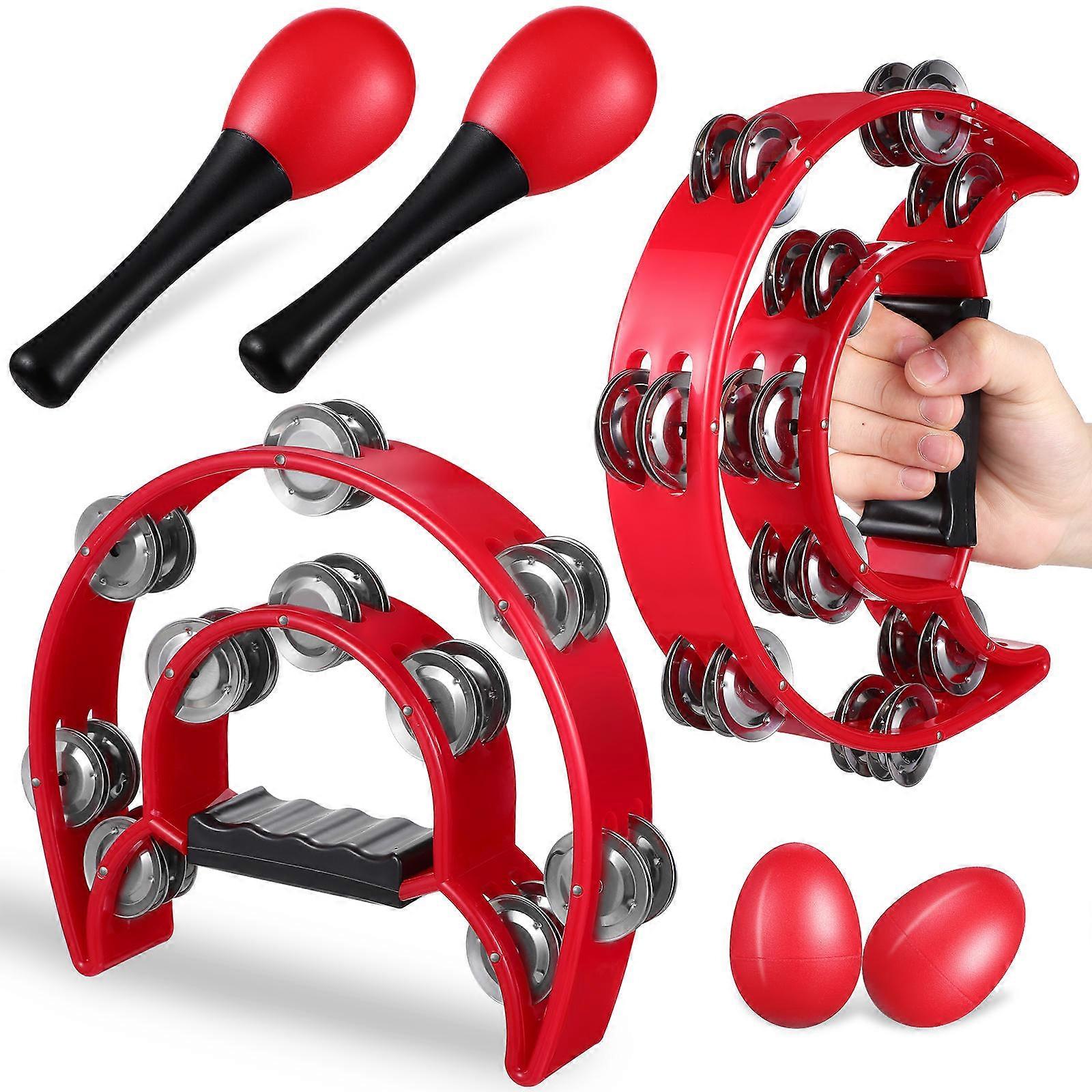 The item is a set of tambourine musical instruments. Tambourine with double row jingle, bright sound quality, and quality construction, easy to use. The maraca has a portable handle and can be used with any musical instrument. The egg are small and delicate, can be with one hand, suitable for children to use. Features -Color:Red -Material: Plastic -Tambourine size: 22.00X4.50X19.00cm/8.65X1.77X7.47in -Maracas size:13.00X4.00cm/5.11X1.57in -Egg size:5.60X4.00cm/2.20X1.57in -The value set contains a tambourine, egg and maracas. -Tambourine with double row bells, bright sound quality and quality construction, easy to use. -The maraca has a portable handle and can be used with any musical instrument. -The egg are small and delicate, can be with one hand, suitable for children to use. -This set of musical instruments can be played without any musical background, allowing you to enjoy the fun of music. Package list: 1 x Tambourine 2 x Maracas 2 x Egg