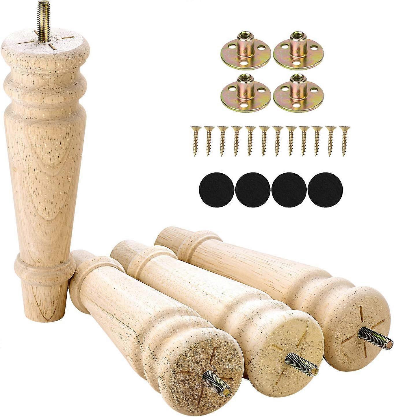 Maricome 8 Inch Furniture Legs Set of 4 Wood Replacement Sofa Legs for Cabinet Couch Chair Round Turned Mid Century