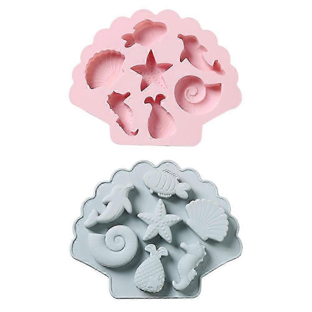 Marine Theme Fondant Silicone Moulds Cake Bakeware Home Cake Shop Use Pink 2Pcs