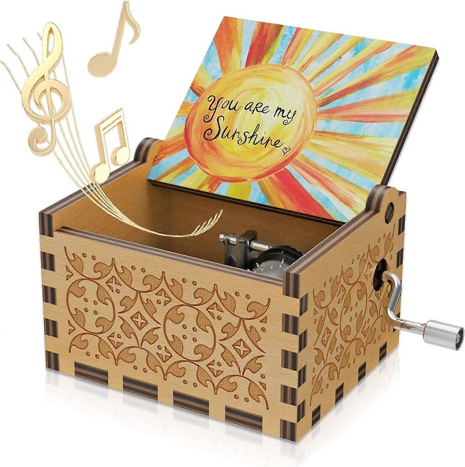 Multicolor You are My Sunshine Tune Wood Music Boxes Vintage Laser Engraved Vintage Hand Crank Color Musical Box Wooden Musical Box Gifts for Daughter