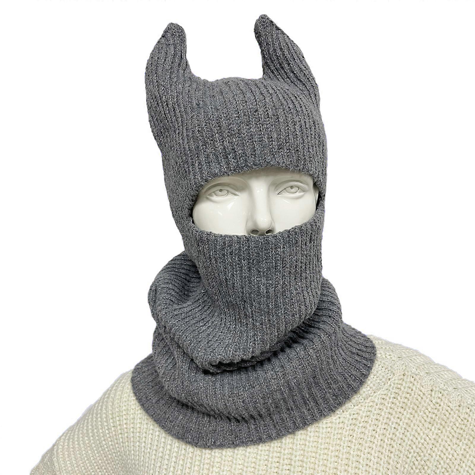 Multiple Color Knit Ox Horn Hat Elastic Windproof Hat Knit Balaclava Hat Ear Protector Hat Winter Cycling Skiing Hat Pure Gray Extended S