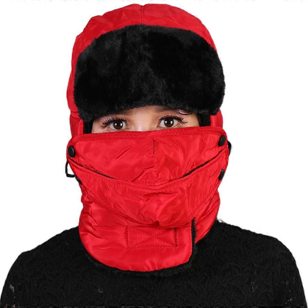 Multi Color Lei Feng Bomber Pilots Hat Warm Windproof Cold-proof Cotton Hat Earmuffs for w/ Mask Lovers Outdoor Climbing Red