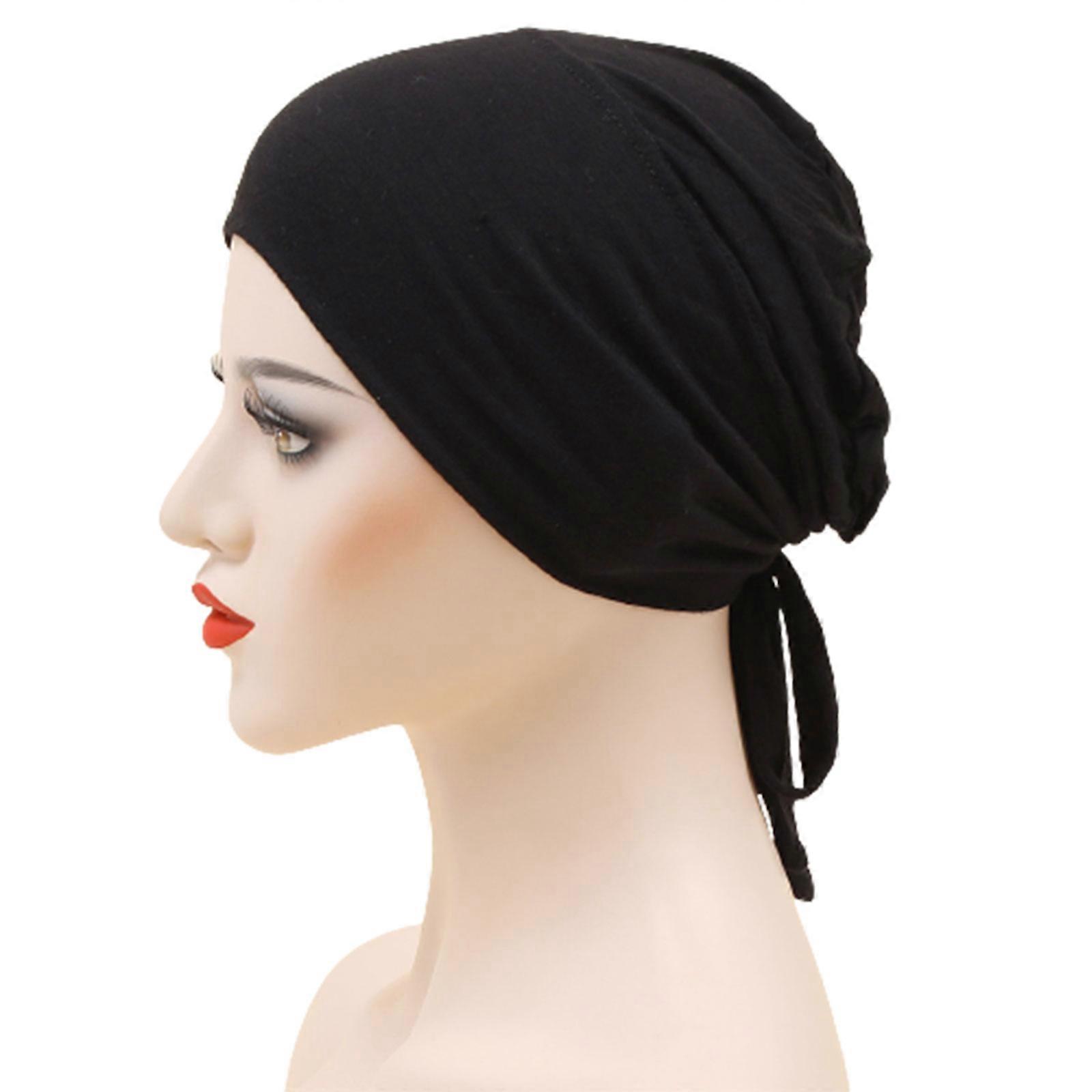 Multi Color Adjustable Muslim Turban Inner Under Hijab Cap with Ties Islamic Bonnet Cap Chemo Cap for Christmas New Year Black