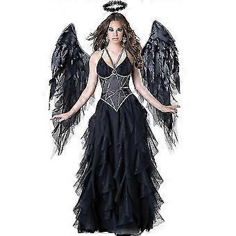 Multiple Carnival Halloween Lady Deluxe Dark Angel Costume Fallen Demonic Feather Halo Wings Roleplay Cosplay Fancy Party Dress