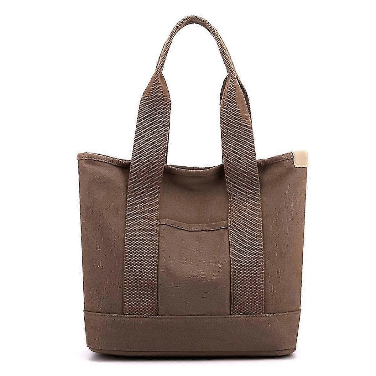 Casual Canvas Tote Bag with Multi Pockets - Large Capacity Shoulder Handbag for Shopping, Work, and Daily Use
