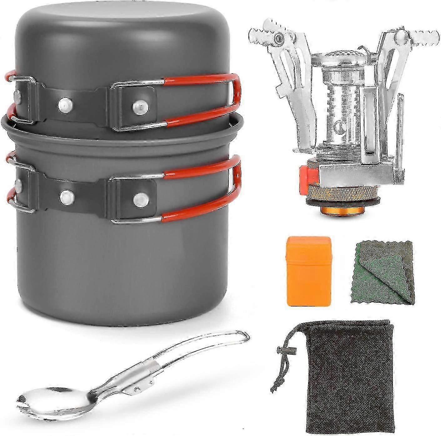 Multi-PCS Durable and Compact Aluminum Camping Stove Pan Kit Camping Utensils Complete with Ultralight Camping Stove for Hiking Fishing