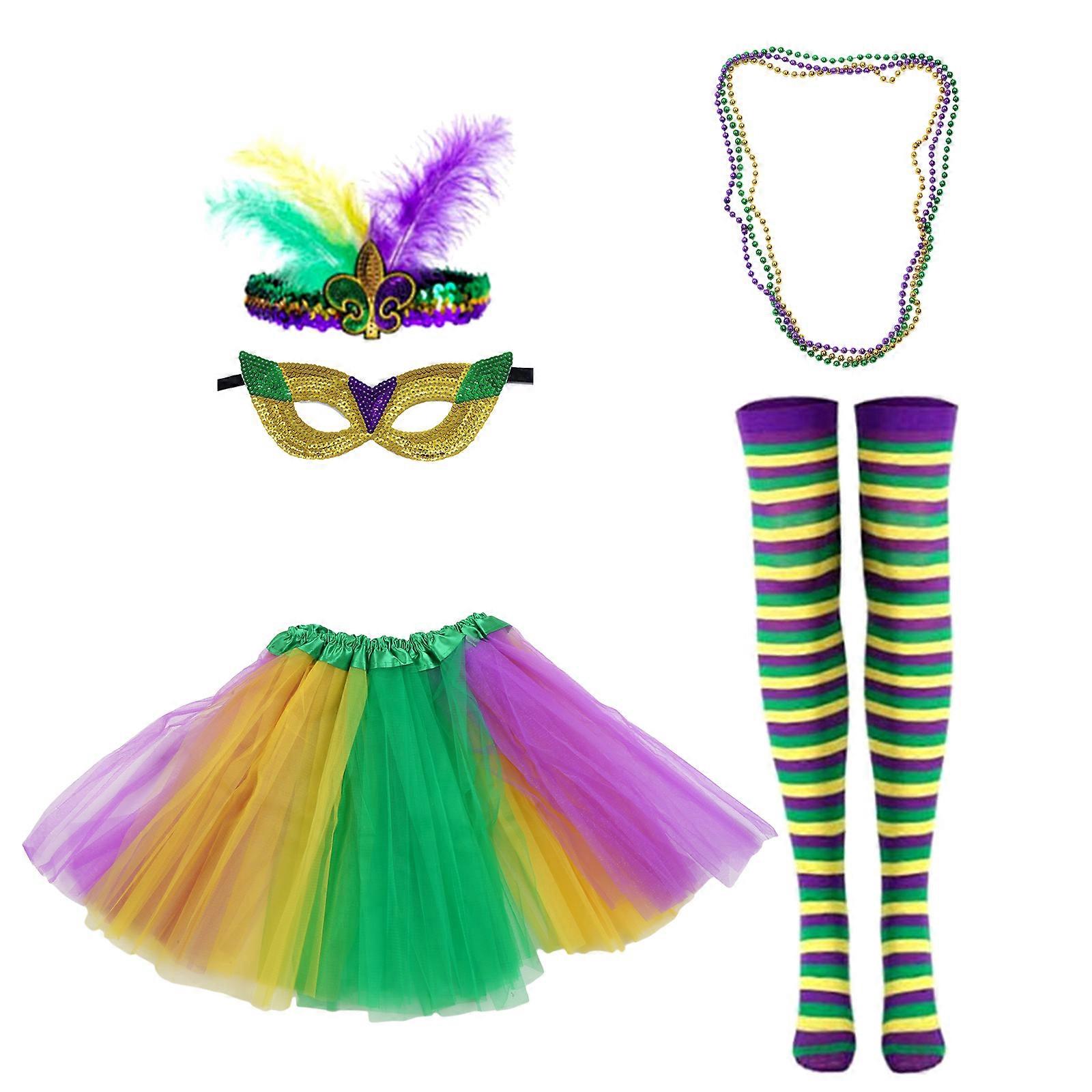 Mardi Gras Celebration Costume Set Masquerade Mask Festival Party Sequins Headband Tutu Skirt Carnival Party Accessories