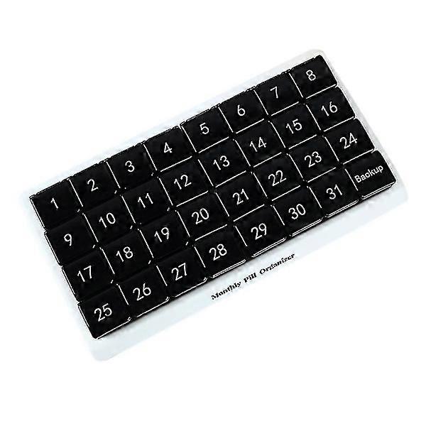 Monthly 31 Compartments, 1 Per Day, 4 Weeks Full Month 31 Days, Black