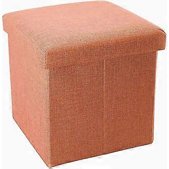 Folding Pouf 30x30x30 cm in Mandarin Orange - Decorative Storage Box in Linen Look Fabric to Save Space - Stool Chest Seat
